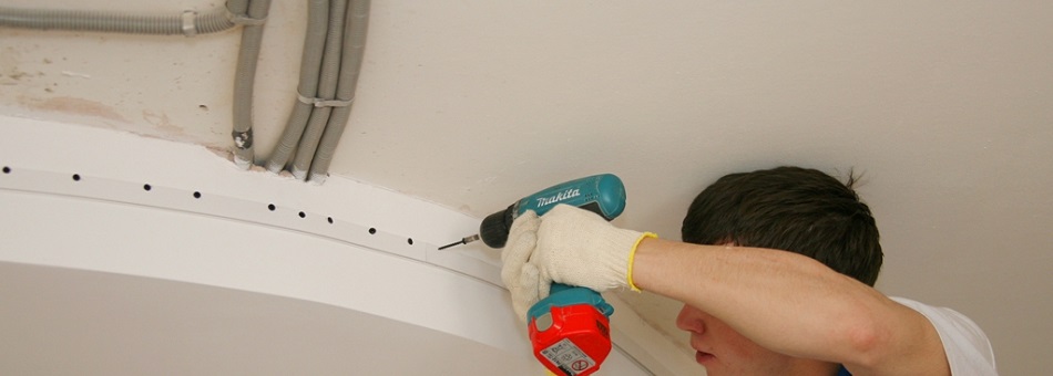 Этапы установки натяжного потолка